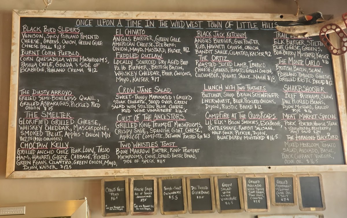 Welcome to the Black Bird Saloon, a hidden gem nestled along the scenic Turquoise Trail in Cerrillos, NM. This charming spot is not just a pit stop; it’s an experience steeped in rustic ambiance that transports you back in time. With a menu that showcases local flavors, diners can indulge in hearty offerings such as the Miners Hand Warmer Burrito and the flavorful El Chivato Burger. Notable dishes like the Grilled Game Sausage Duel and the refreshing Two Ravens Forbidden Salad are sure to please every palate.